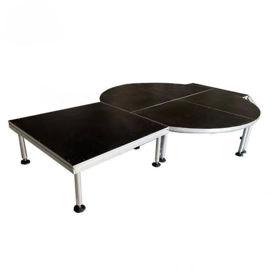 La scène portable à structure en aluminium à verrouillage rapide est dotée de pieds réglables en hauteur, de 0,3 m à 1,2 m. Elle s'adapte ainsi à différents espaces et répond à divers besoins scéniques. La couleur de la plateforme est également personnalisable : noir, rouge, bleu, gris et autres coloris sur mesure sont disponibles. La scène s'intègre ainsi harmonieusement à la scénographie globale de l'événement.