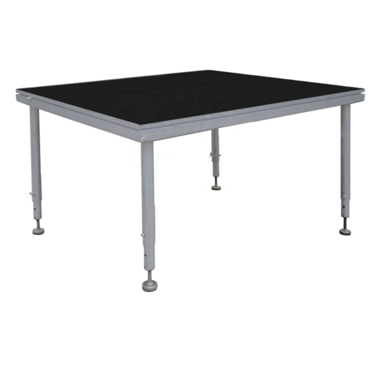 La scène portable à structure en aluminium à verrouillage rapide est conçue pour supporter des charges importantes, avec une charge maximale de 750 kg par mètre carré pour la plateforme de 30 mm d'épaisseur. Elle peut ainsi accueillir en toute sécurité divers équipements et artistes. Ses pieds réglables et sa conception universelle lui confèrent une excellente stabilité, même sur un sol irrégulier.